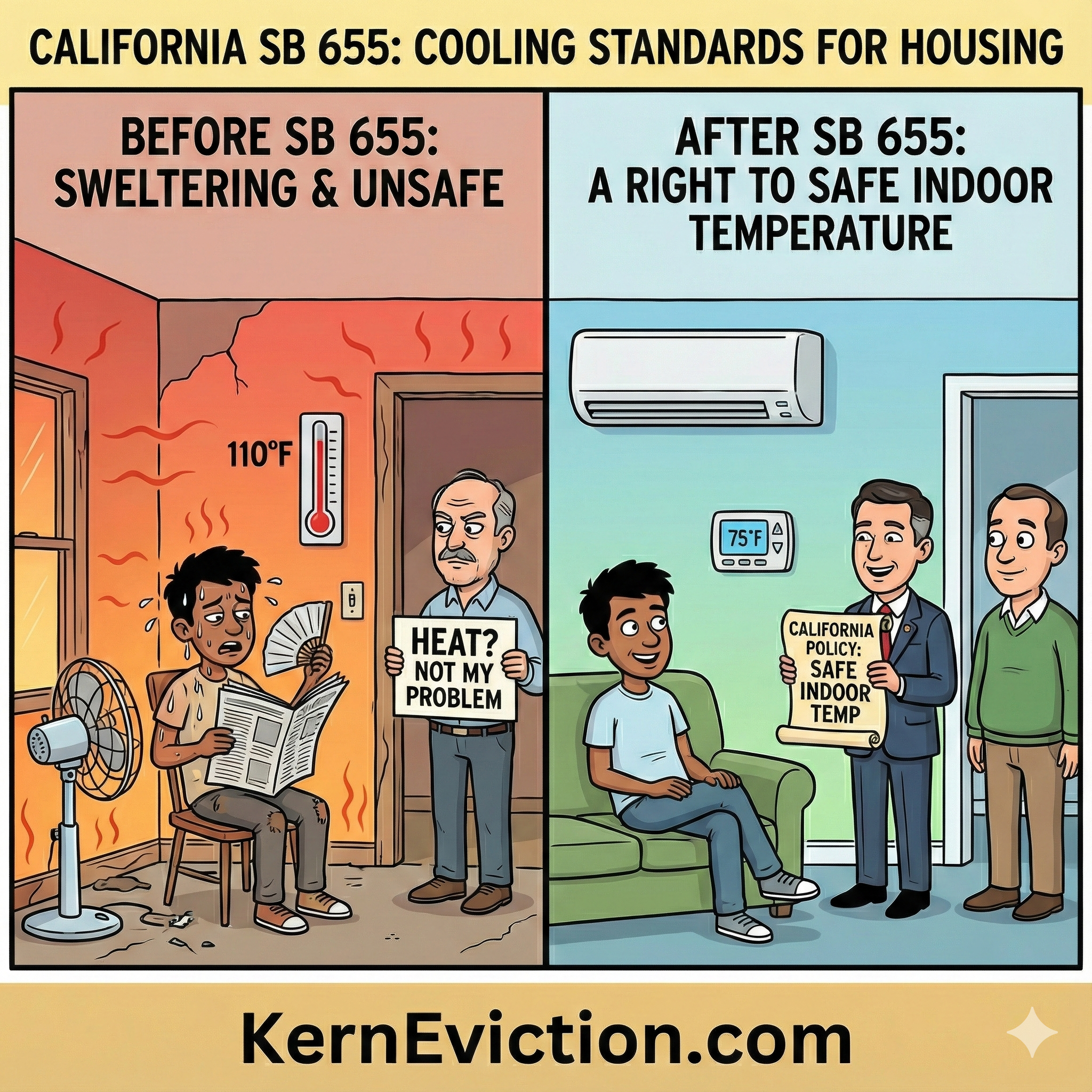 Senate Bill 655 establishes a historic first-in-the-nation state policy regarding maximum indoor temperatures for residential housing. While California law has long required homes to be able to maintain a minimum temperature of 68°F, SB 655 addresses the rising threat of extreme heat by moving toward a “cooling standard.”